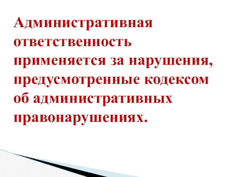 Слайд 14Административная ответственность применяется за нарушения, предусмотренные кодексом об административных правонарушениях.