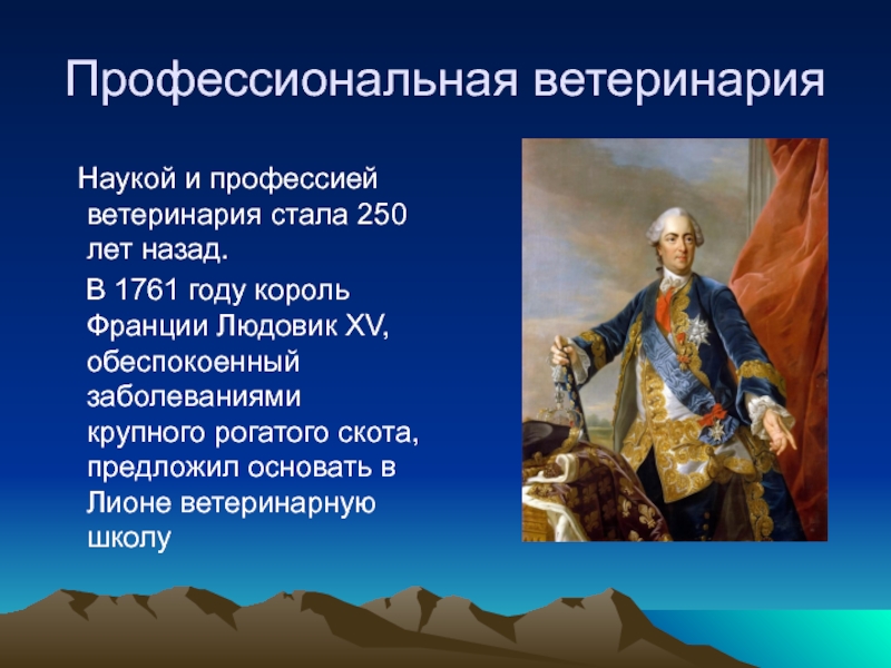 В 1761 году король Франции Людовик XV, обеспокоенный заболеваниями крупного рогатого скота, предложил основать в Лионе ветеринарную школу