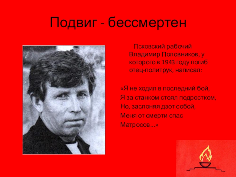 Слайд 4Подвиг - бессмертен