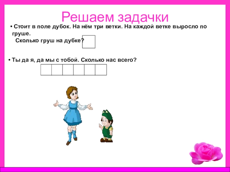 Стоит в поле дубок. На нём три ветки. На каждой ветке выросло по груше.