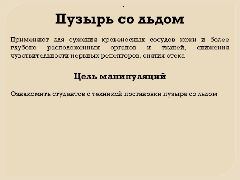 Заполнить пузырь на 1/3 объема мелко наколотыми кусочками льда на 2/3 объема водой