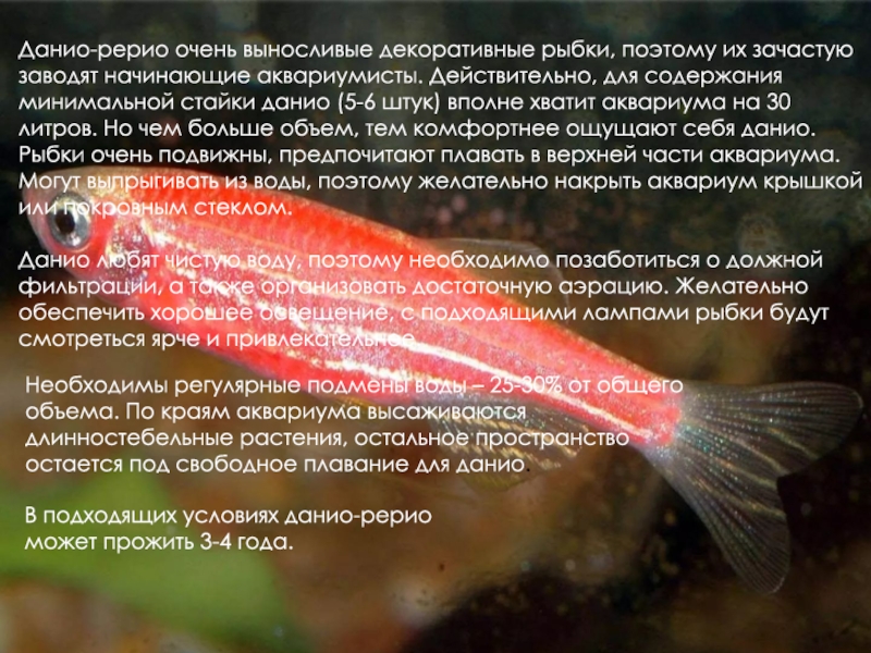 В подходящих условиях данио-рерио может прожить 3-4 года.