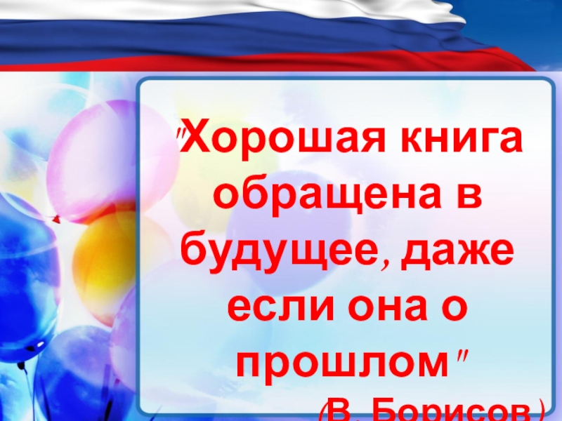 Слайд 3"Хорошая книга обращена в будущее, даже если она о прошлом"