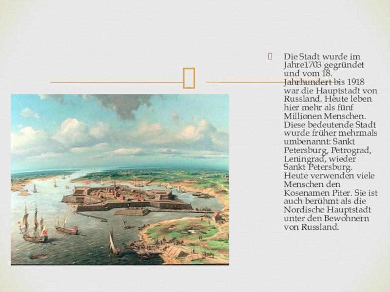 Слайд 2Die Stadt wurde im Jahre1703 gegründet und vom 18. Jahrhundert bis