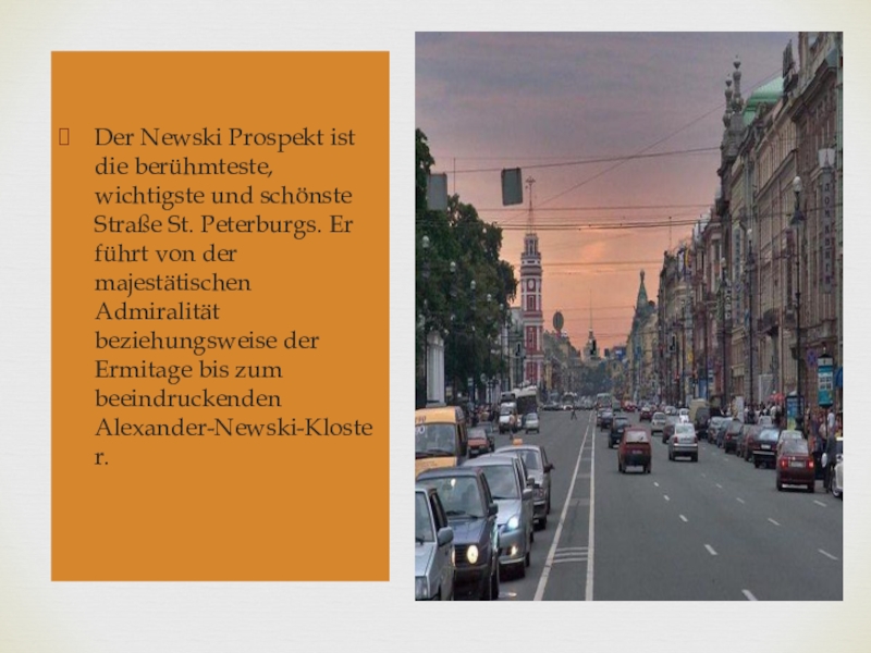 Слайд 9Der Newski Prospekt ist die berühmteste, wichtigste und schönste Straße St.