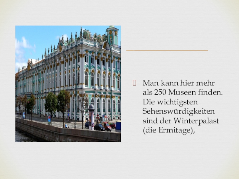 Слайд 10Die Ermitage ist das größte Museum Russlands. Boris Piotrowski, der viele