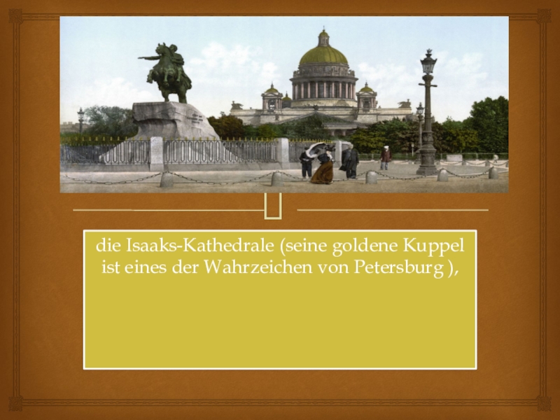 Слайд 6die Isaaks-Kathedrale (seine goldene Kuppel ist eines der Wahrzeichen von Petersburg