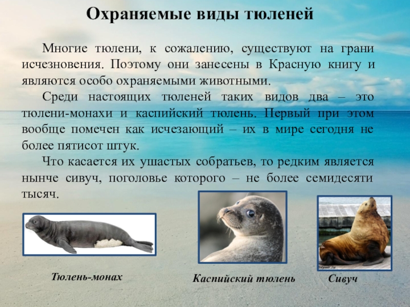 Тюленями принято называть представителей групп ушастых и настоящих тюленей. Конечности животных