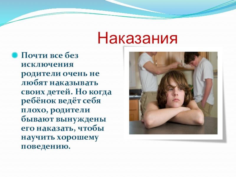 Почти все без исключения родители очень не любят наказывать своих детей. Но когда ребёнок ведёт себя плохо, родители бывают вынуждены его наказать, чтобы научить хорошему поведению.
