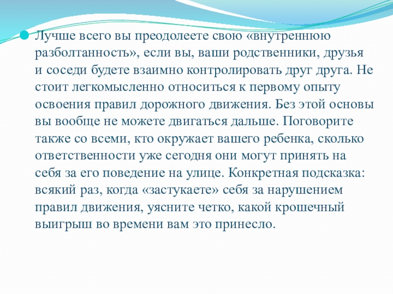 Слайд 7Лучше всего вы преодолеете свою «внутреннюю разболтанность», если вы, ваши родственники,