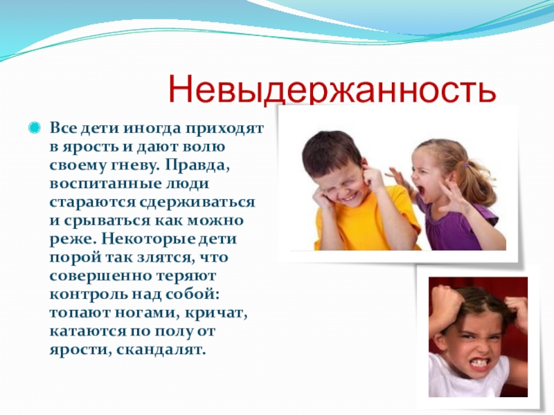Слайд 19 Невыдержанность
