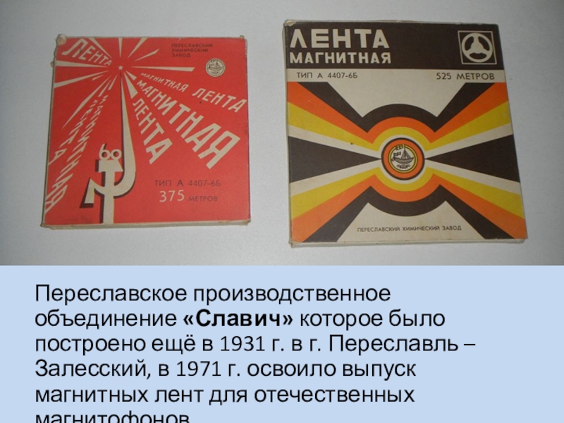 в г. Переславль – Залесский, в 1971 г. освоило выпуск магнитных лент для отечественных магнитофонов.