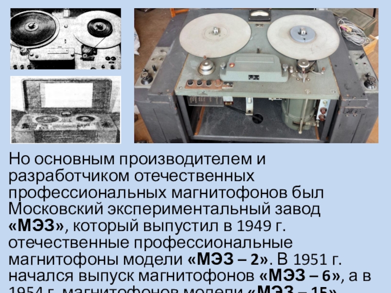 Слайд 18Но основным производителем и разработчиком отечественных профессиональных магнитофонов был Московский экспериментальный