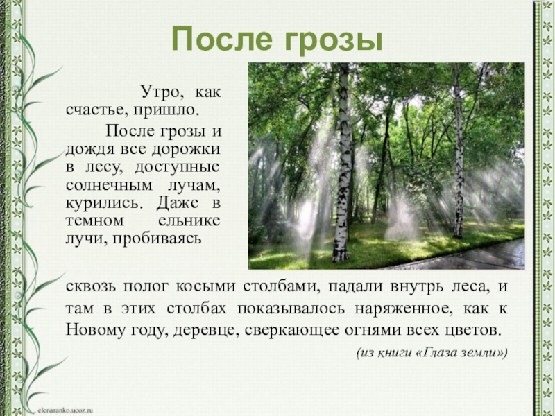 После грозы и дождя все дорожки в лесу, доступные солнечным лучам, курились. Даже в темном ельнике лучи, пробиваясь