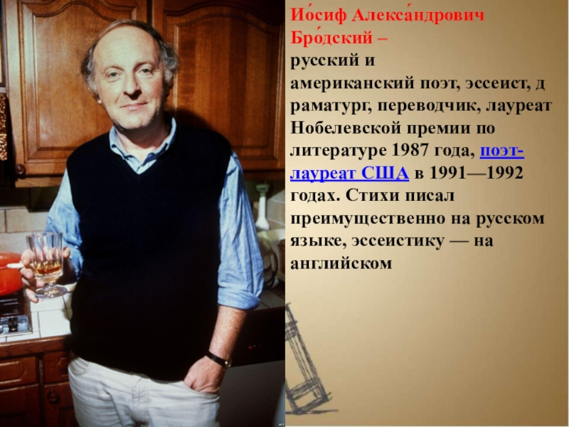 Слайд 40Ио́сиф Алекса́ндрович Бро́дский –