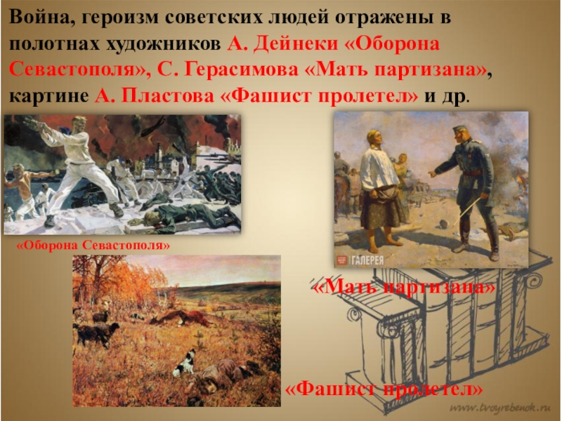 Севастополя», С. Герасимова «Мать партизана», картине А. Пластова «Фашист пролетел» и др.