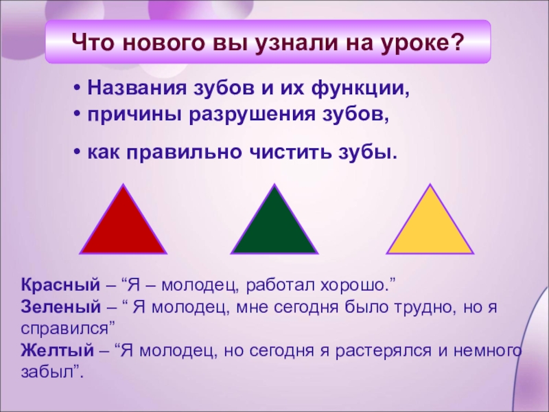 Зеленый – “ Я молодец, мне сегодня было трудно, но я справился”