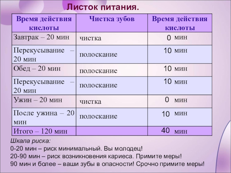 20-90 мин – риск возникновения кариеса. Примите меры!