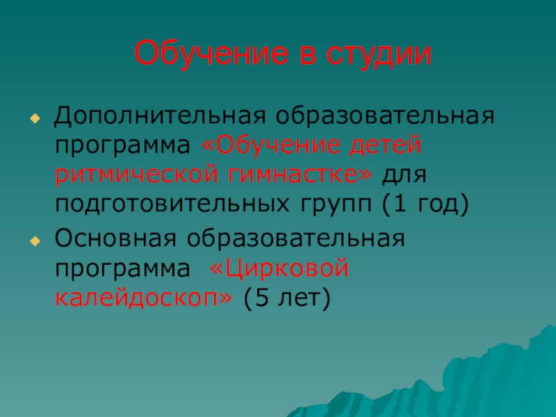 Обучение в студии Дополнительная образовательная программа «Обучение детей     ритмической гимнастке» для подготовительных групп