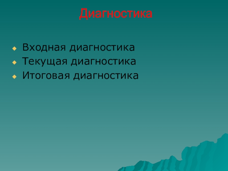 Диагностика Входная диагностикаТекущая диагностикаИтоговая диагностика