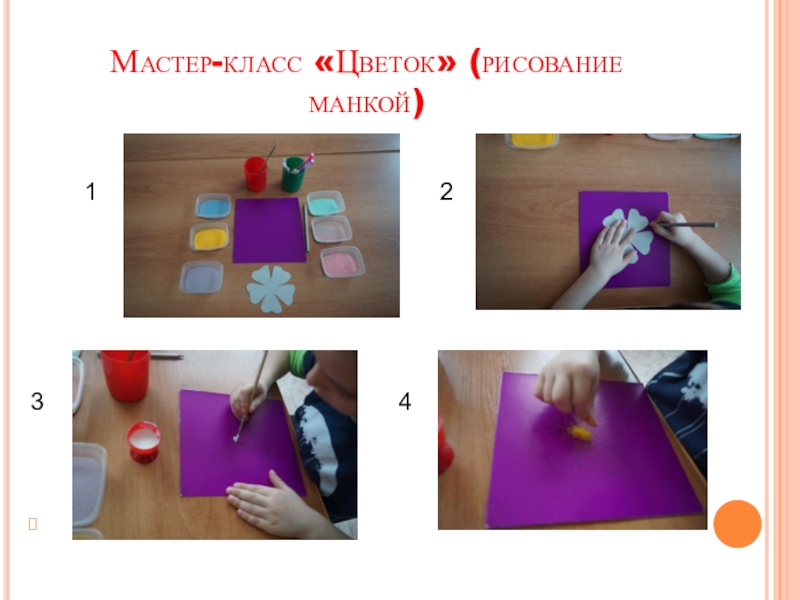 Слайд 15Мастер-класс «Цветок» (рисование манкой)