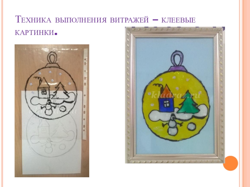 Слайд 11Техника выполнения витражей – клеевые картинки.