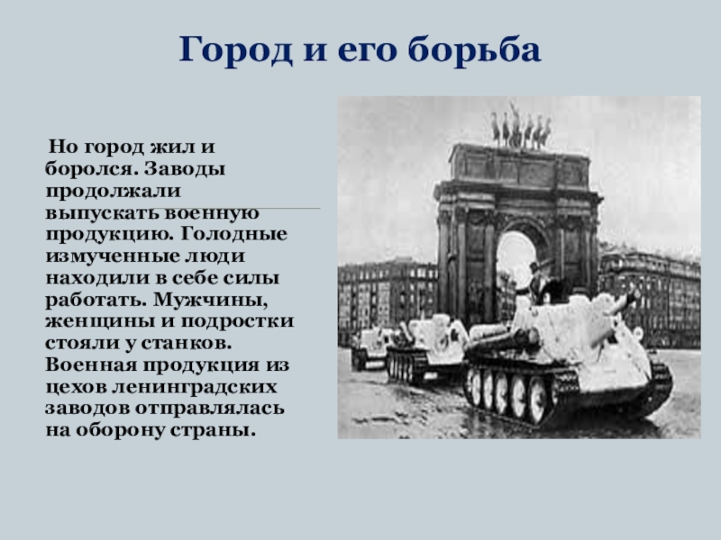 Город и его борьба    Но город жил и боролся. Заводы продолжали выпускать военную продукцию.