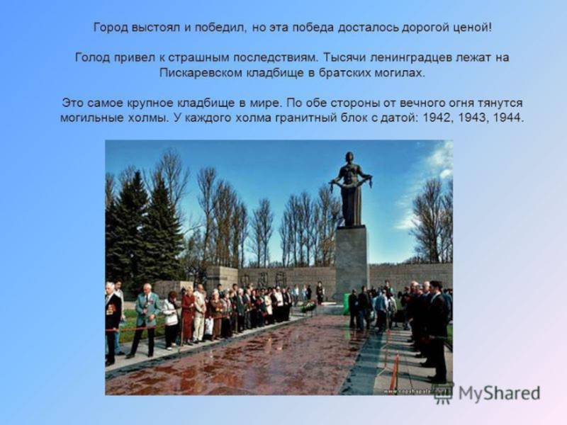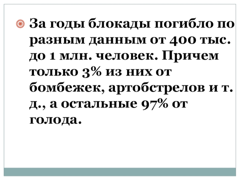 Слайд 40За годы блокады погибло по разным данным от 400 тыс. до