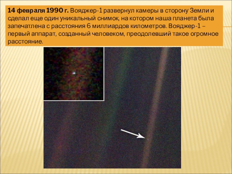 Слайд 714 февраля 1990 г. Вояджер-1 развернул камеры в сторону Земли и сделал