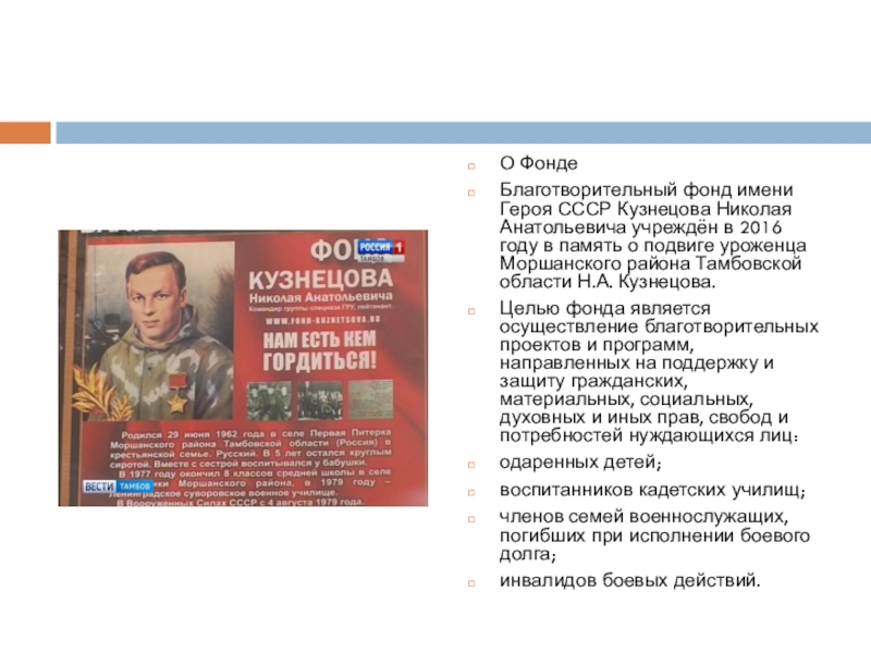 Благотворительный фонд имени Героя СССР Кузнецова Николая Анатольевича учреждён в