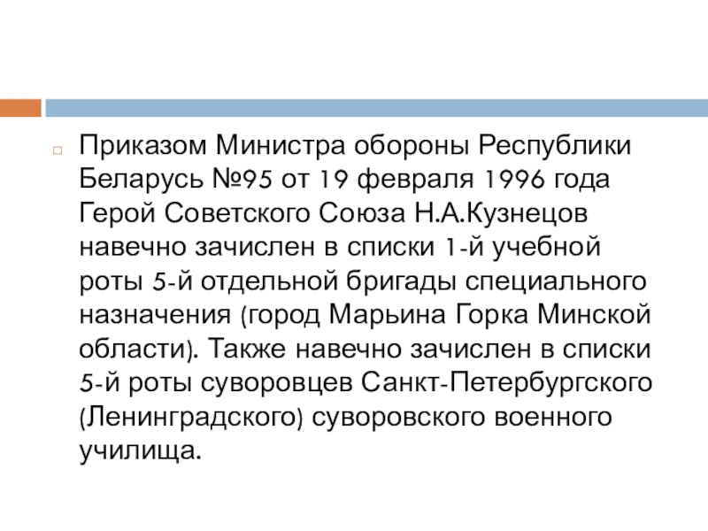 Слайд 7Приказом Министра обороны Республики Беларусь №95 от 19 февраля 1996 года