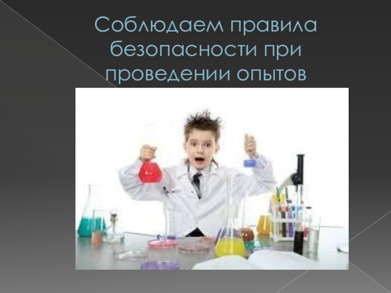 Слайд 5Соблюдаем правила безопасности при проведении опытов