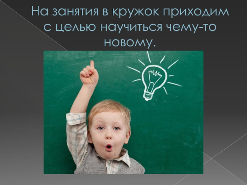 Слайд 2На занятия в кружок приходим с целью научиться чему-то новому.