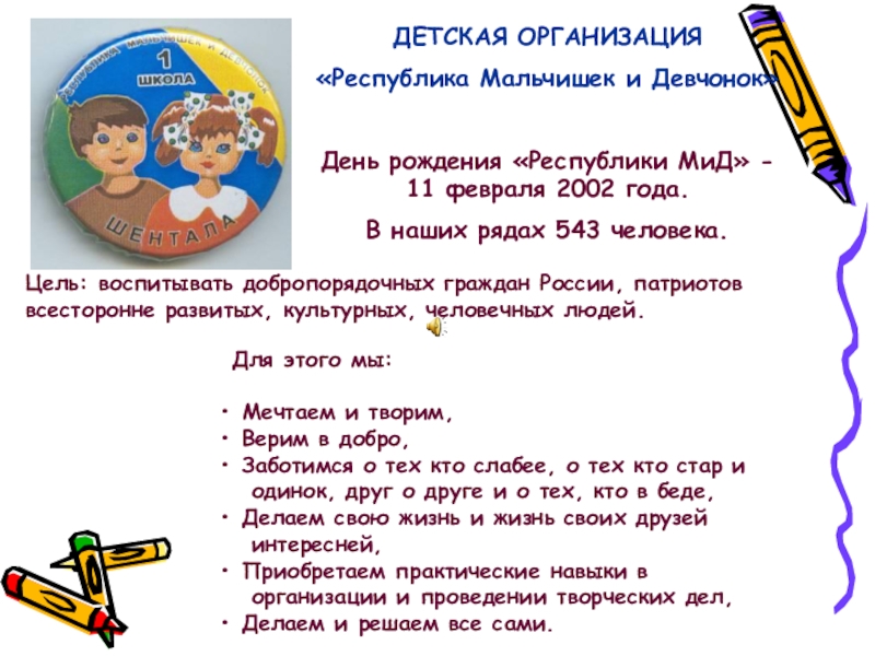 Цель: воспитывать добропорядочных граждан России, патриотов всесторонне развитых, культурных, человечных людей.