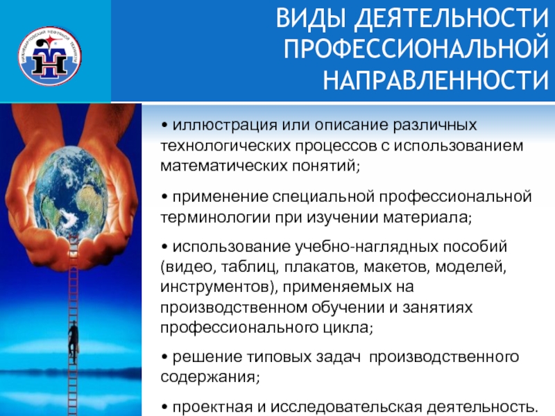 Слайд 8ВИДЫ ДЕЯТЕЛЬНОСТИ ПРОФЕССИОНАЛЬНОЙ НАПРАВЛЕННОСТИ