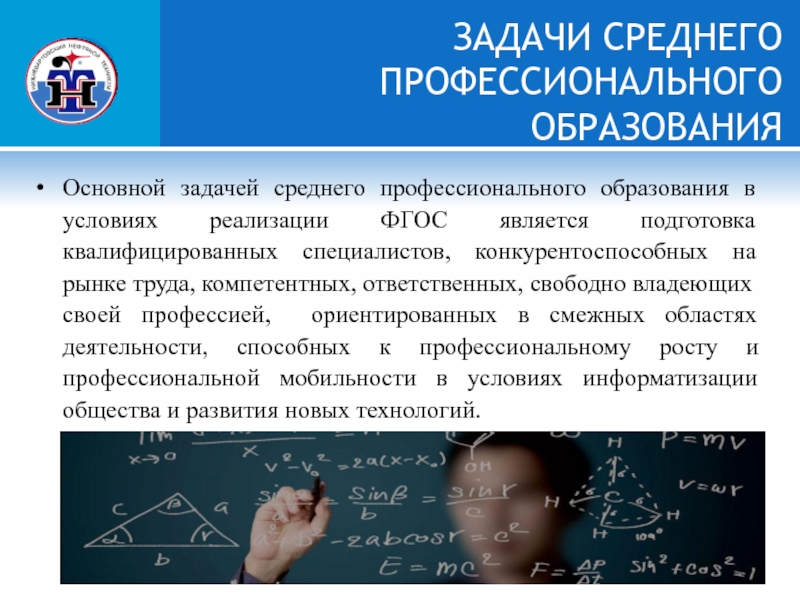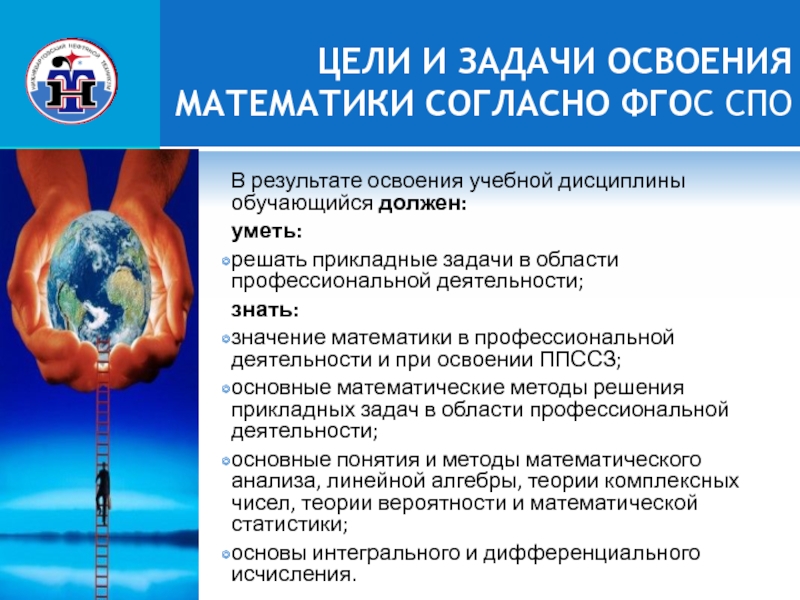 Слайд 3ЦЕЛИ И ЗАДАЧИ ОСВОЕНИЯ МАТЕМАТИКИ СОГЛАСНО ФГОС СПО