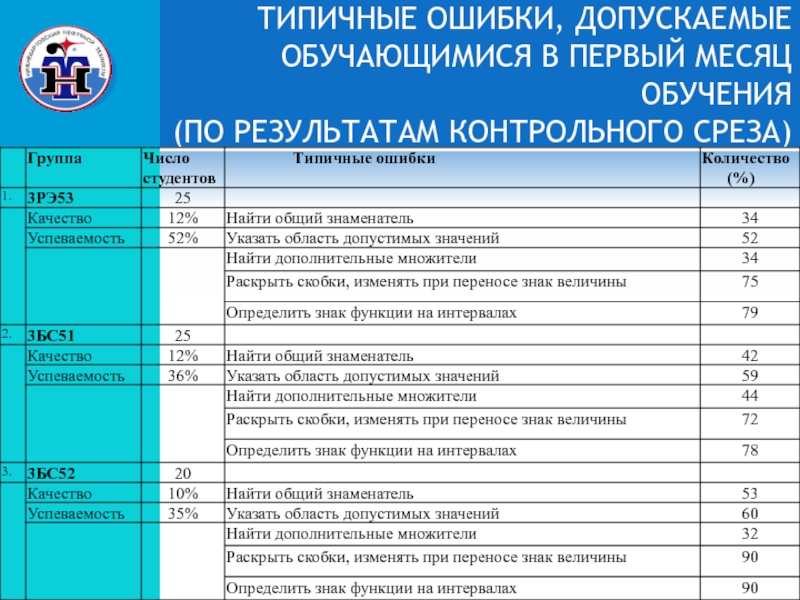 Слайд 11ТИПИЧНЫЕ ОШИБКИ, ДОПУСКАЕМЫЕ ОБУЧАЮЩИМИСЯ В ПЕРВЫЙ МЕСЯЦ ОБУЧЕНИЯ