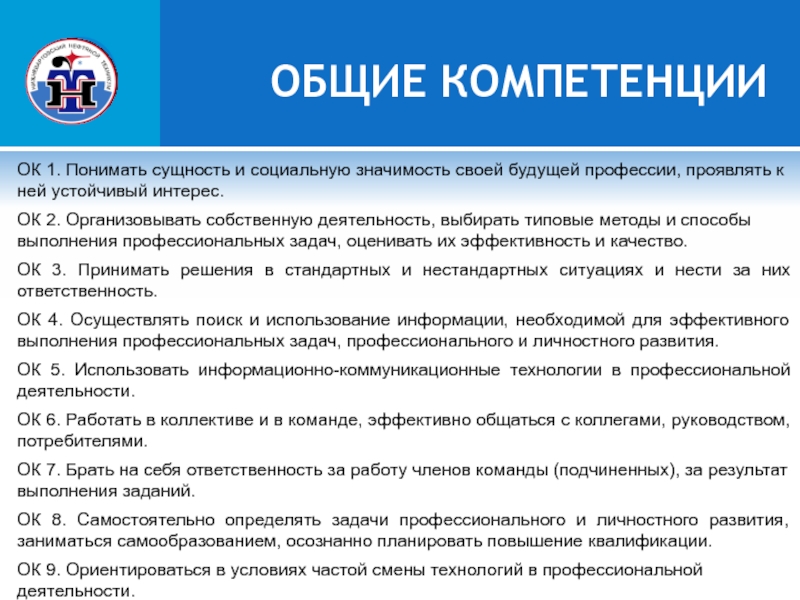 Слайд 4ОБЩИЕ КОМПЕТЕНЦИИ