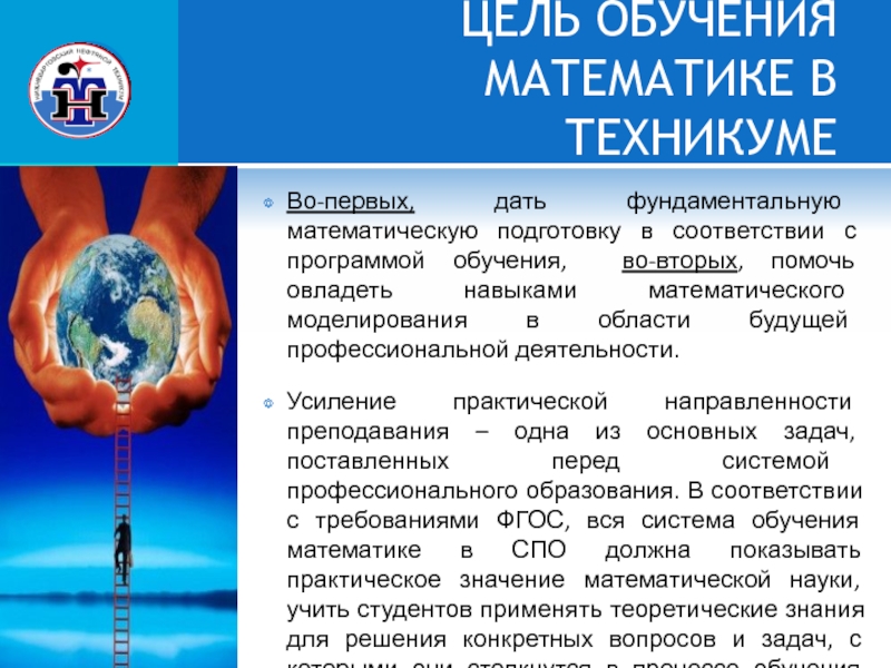Слайд 6ЦЕЛЬ ОБУЧЕНИЯ МАТЕМАТИКЕ В ТЕХНИКУМЕ