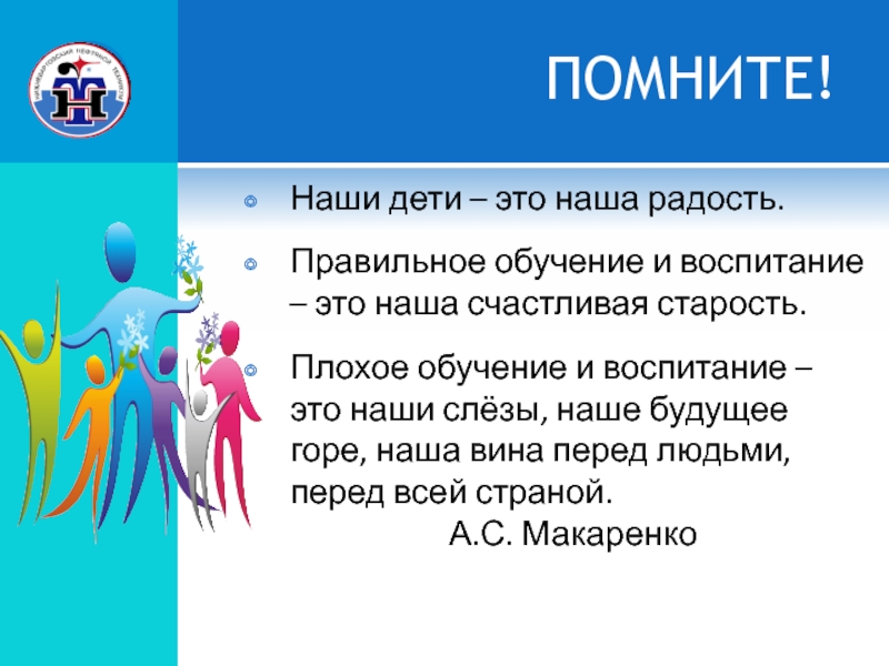 Плохое обучение и воспитание – это наши слёзы, наше будущее горе, наша вина перед людьми, перед всей страной.