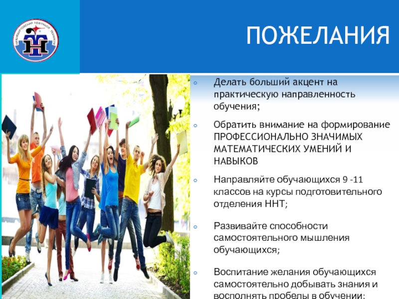 Направляйте обучающихся 9 -11 классов на курсы подготовительного отделения ННТ;