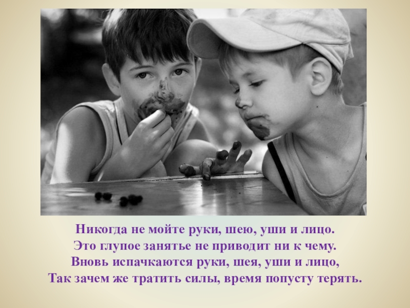 Слайд 15Никогда не мойте руки, шею, уши и лицо.
