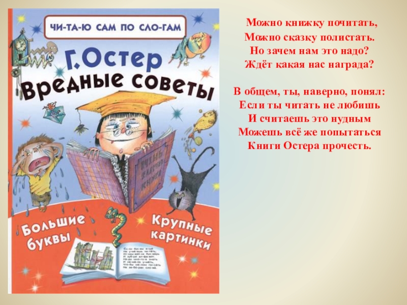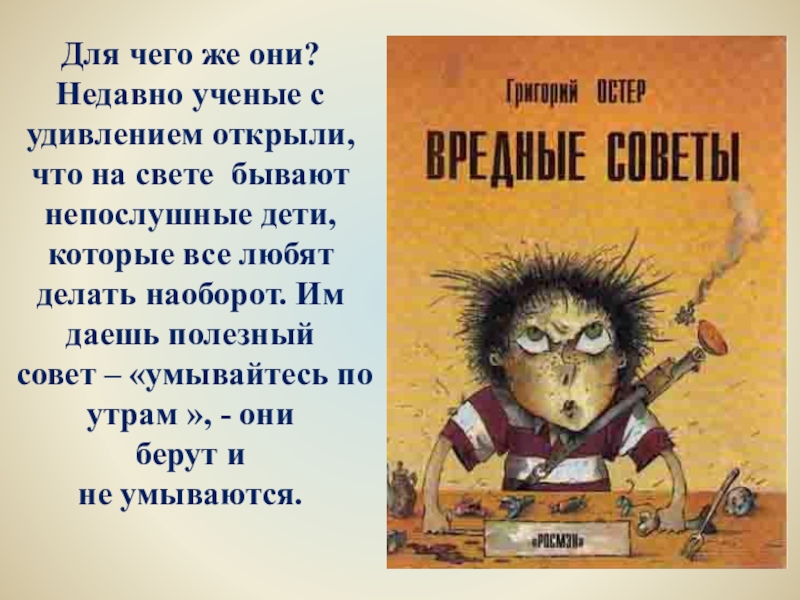 Слайд 17Григорий Остер дает не только «Вредные советы», но и рекомендует выполнять