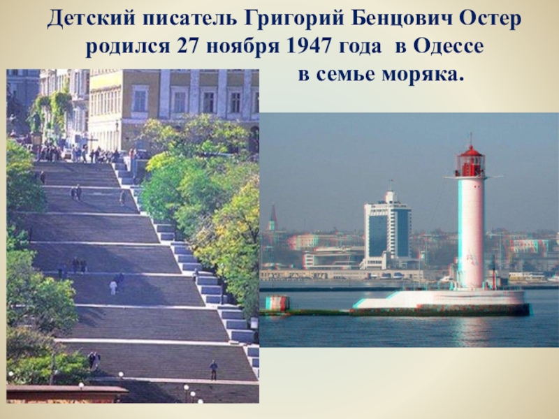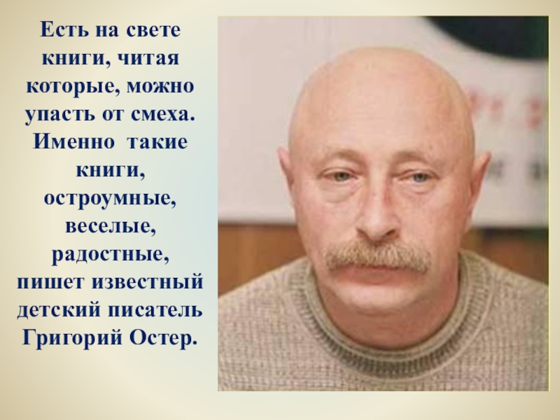 Слайд 4Детский писатель Григорий Бенцович Остер родился 27 ноября 1947 года в