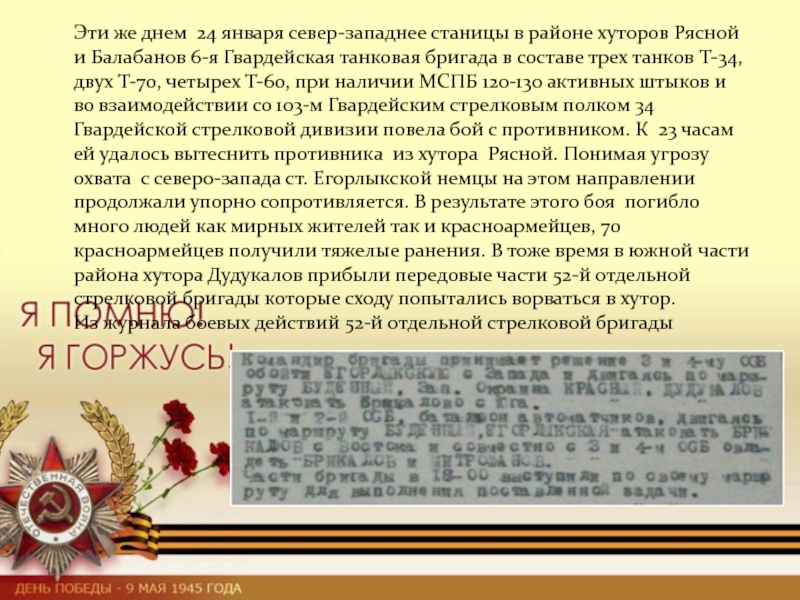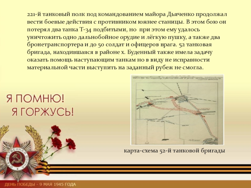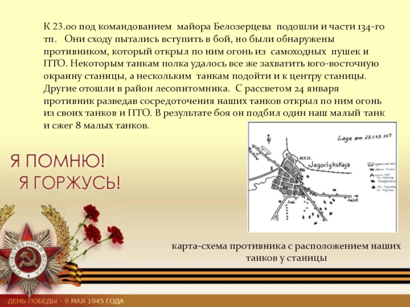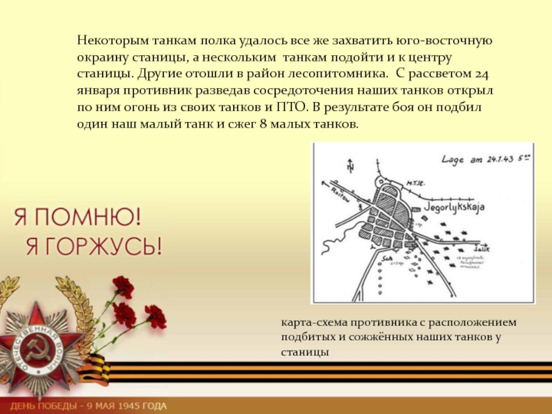 карта-схема противника с расположением подбитых и сожжённых наших танков у станицы