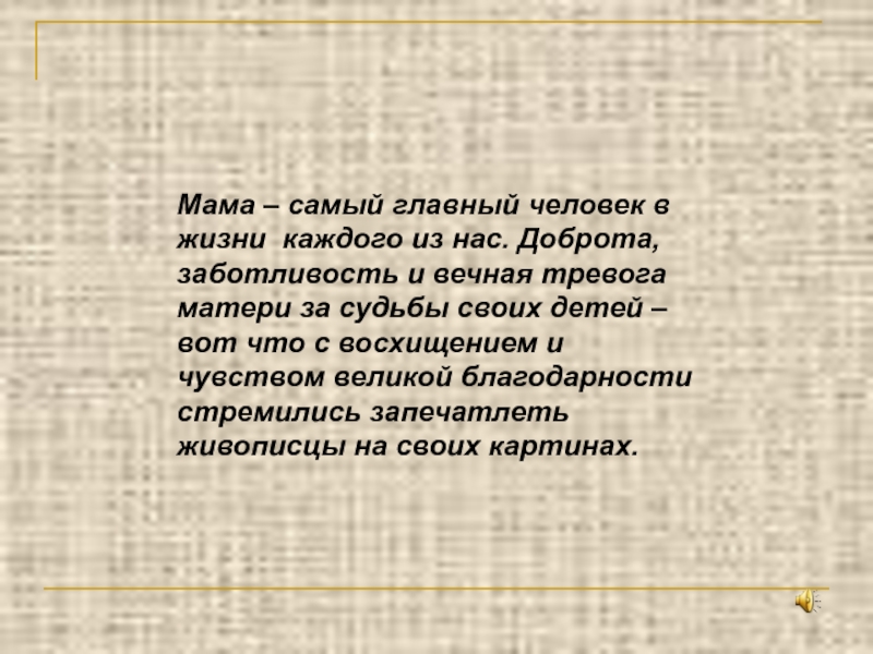 Мама – это главное слово в жизни. Ведь мама родила меня, она подарила мне жизнь.