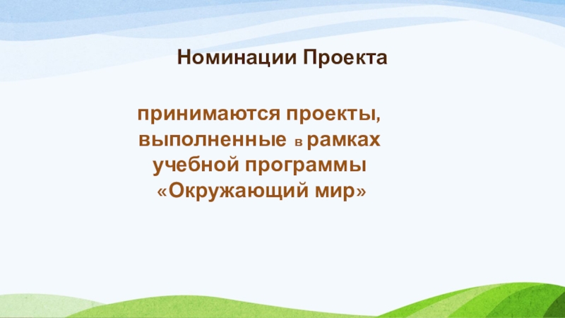 Номинации Проектапринимаются проекты, выполненные в рамках учебной программы «Окружающий мир»