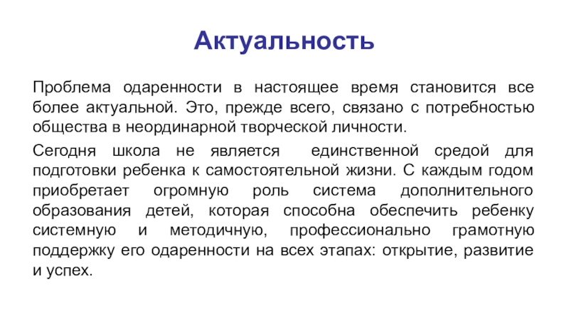 Проблема одаренности в настоящее время становится все более актуальной. Это, прежде