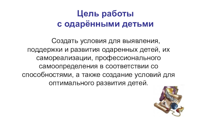создание условий, способствующих оптимальному развитию одаренности.