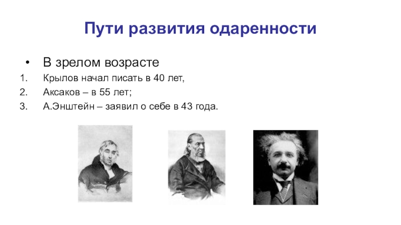 А.Энштейн – заявил о себе в 43 года.